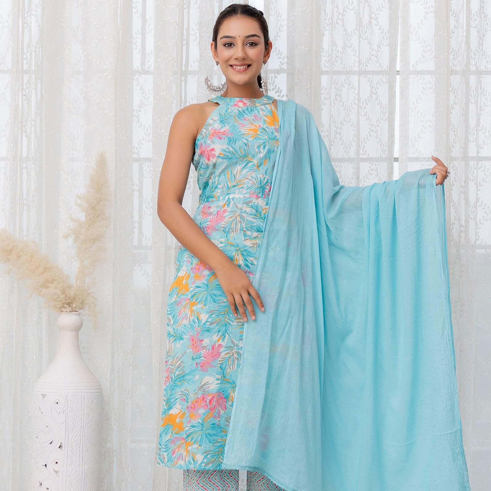 Halter Neck Cotton Kurti Set