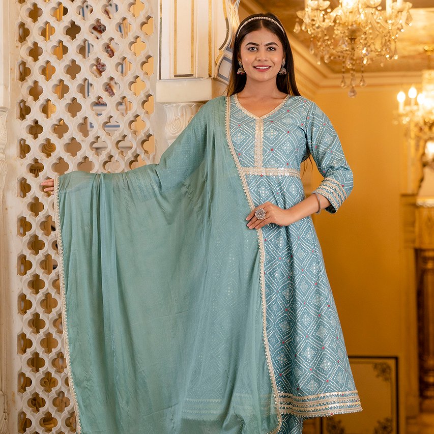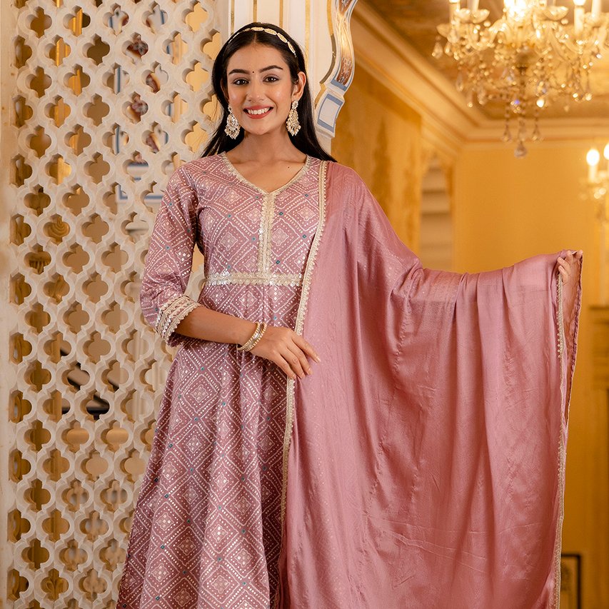 Festive 3-Piece Anarkali Set with Chinon Dupatta