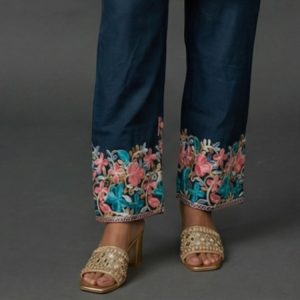 The V-neck top is beautifully enhanced with intricate embroidery on the top, complemented by matching embroidery on the pant and sleeves, adding a refined and coordinated look. With its attractive design and comfortable fit, this co-ord set effortlessly blends modern style with ethnic charm.