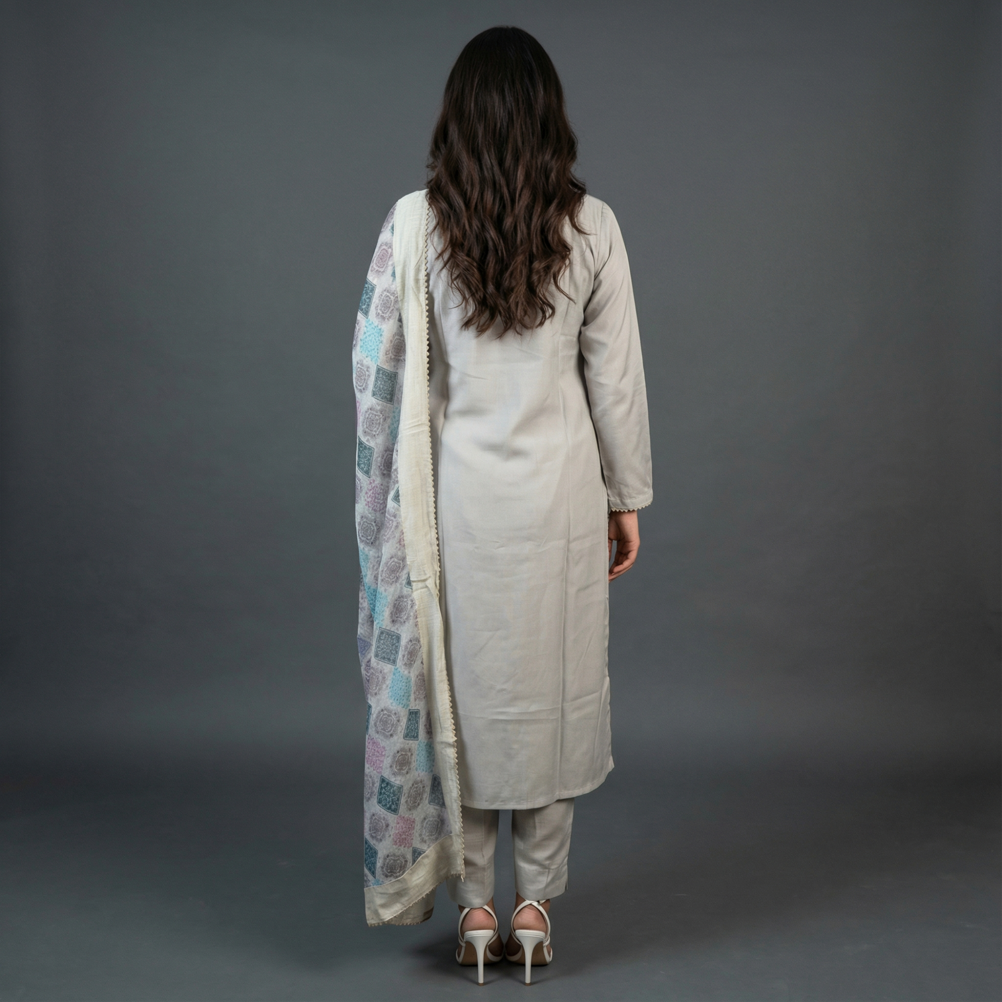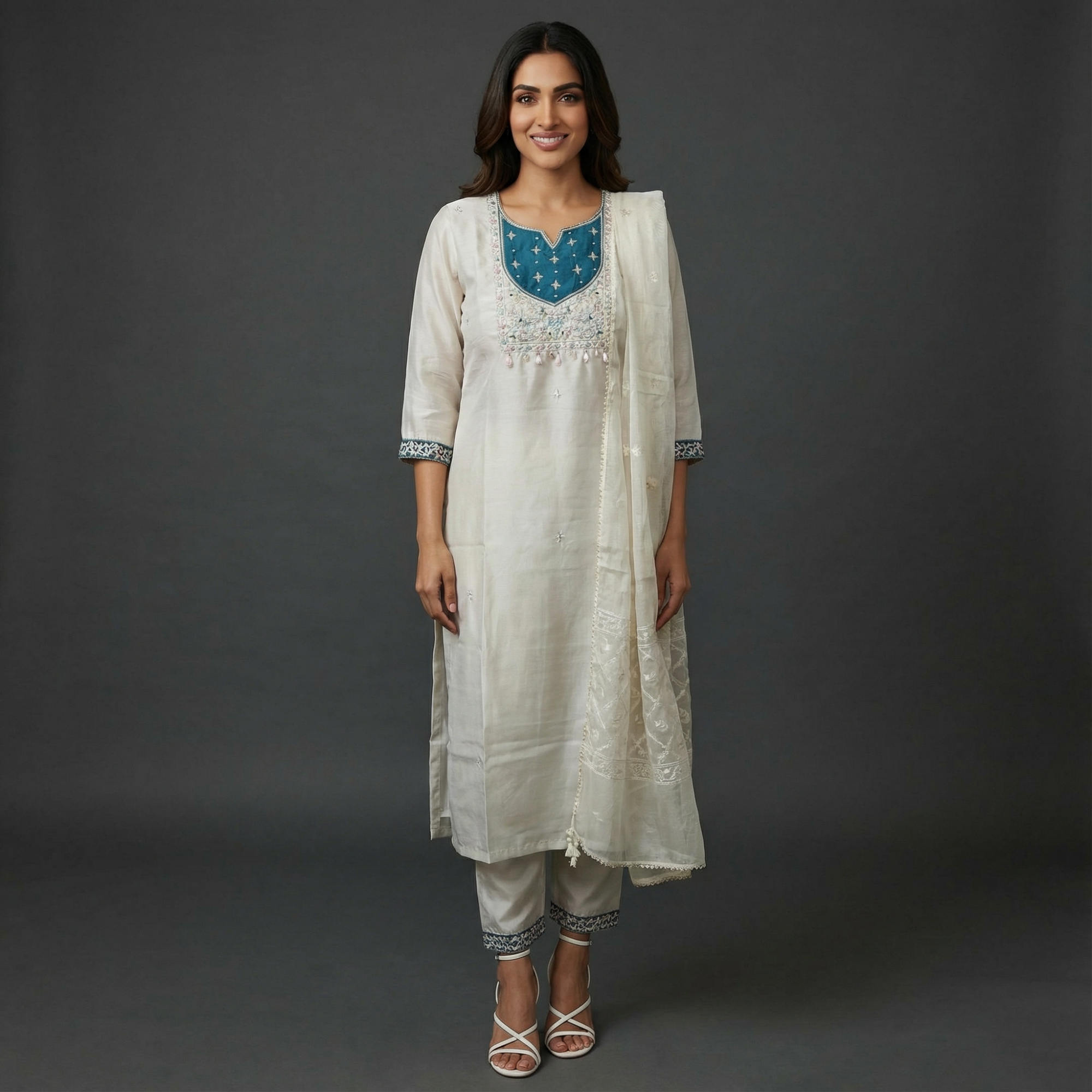 • Complete Ensemble: Comes as a full 3-piece set including a matching Kurti, Pant, and a beautifully designed Dupatta.