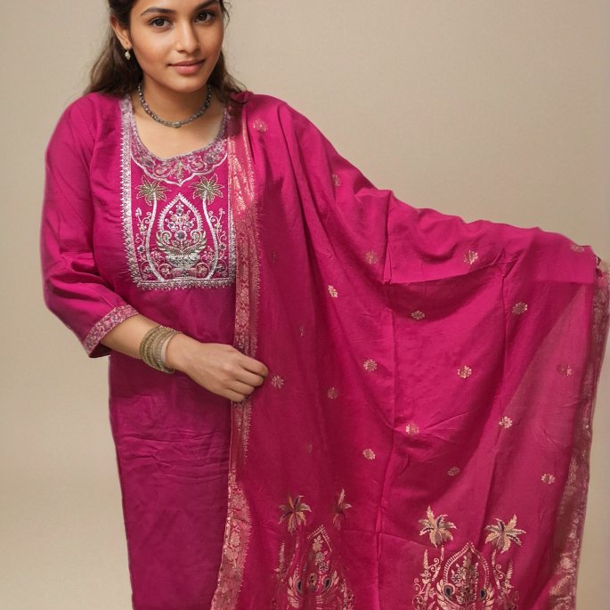 - Refined Placement Embroidery: Features delicate, high-quality embroidery near the sleeves and along the Kurti hem, perfectly mirrored by matching details on the pant bottoms.