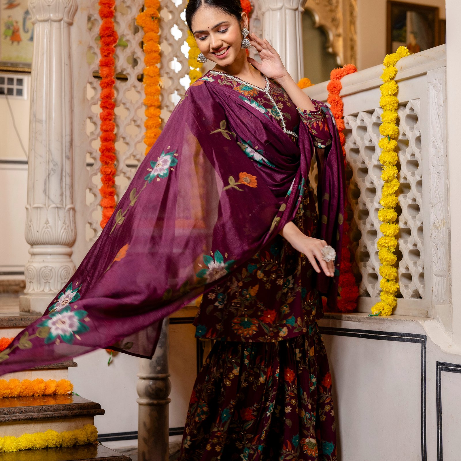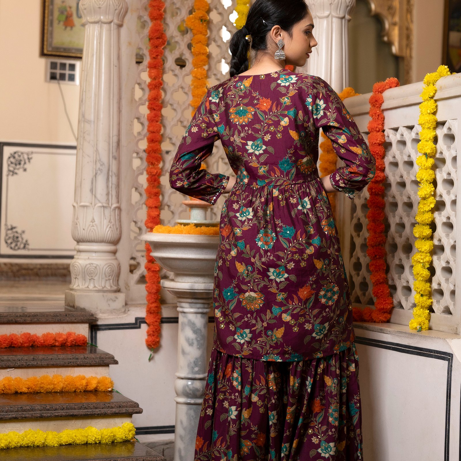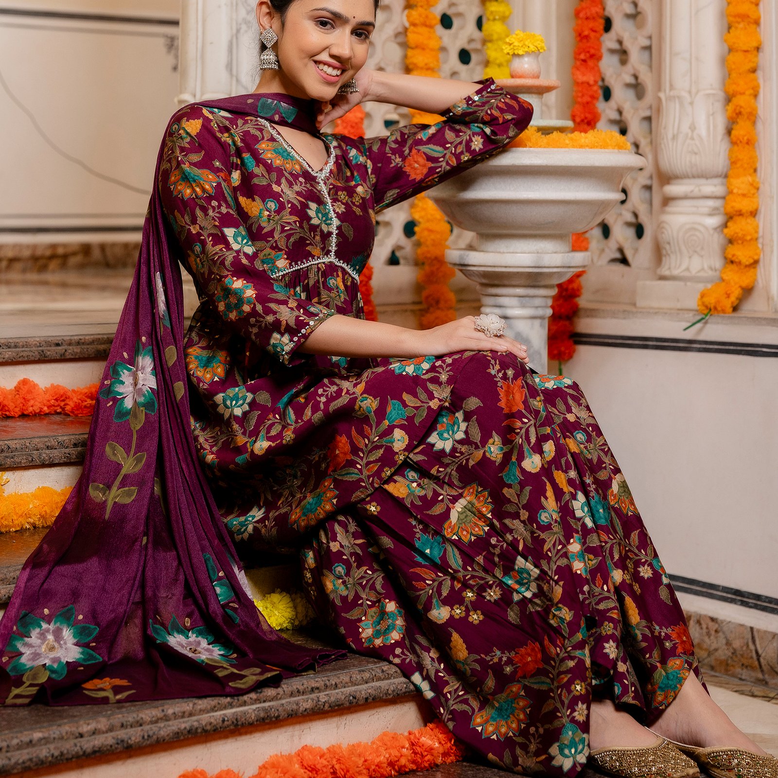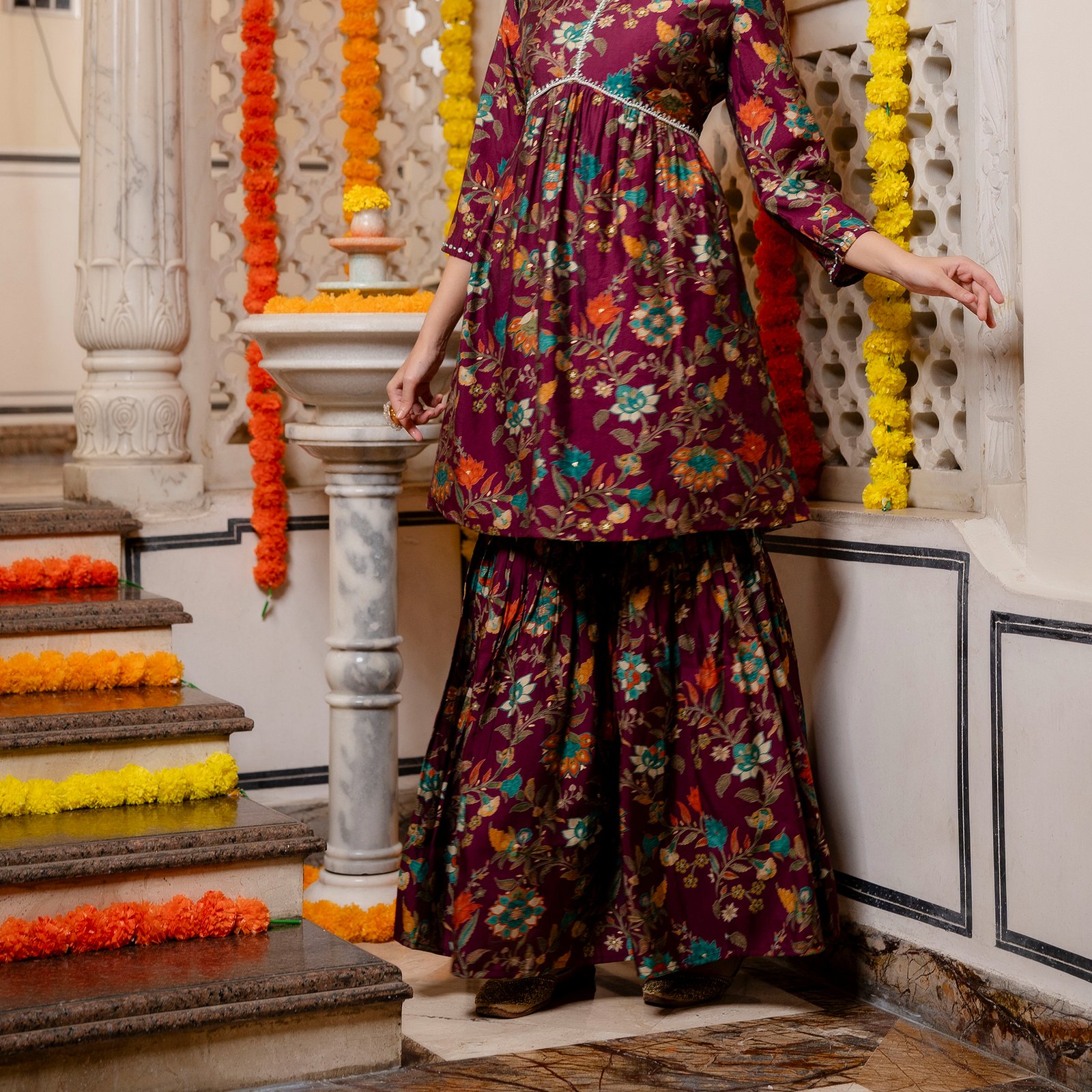 - Trend-Leading Sharara Silhouette: The voluminous, flared Sharara bottoms add a touch of drama and traditional charm, making every movement look effortless and graceful.