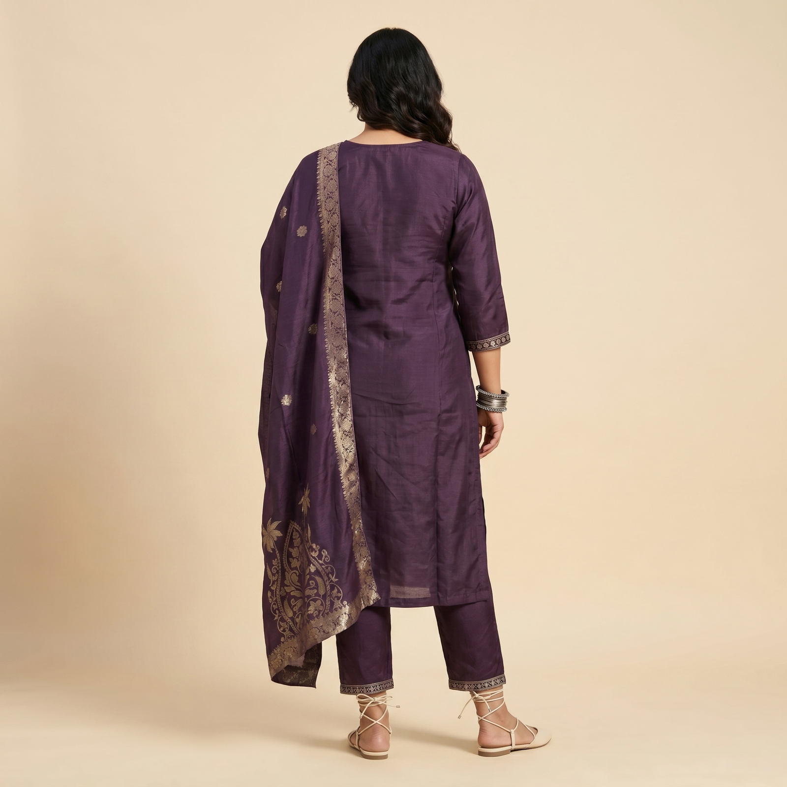 Be the first to review “Royal Purple Roman Silk Set with Designer Dupatta”