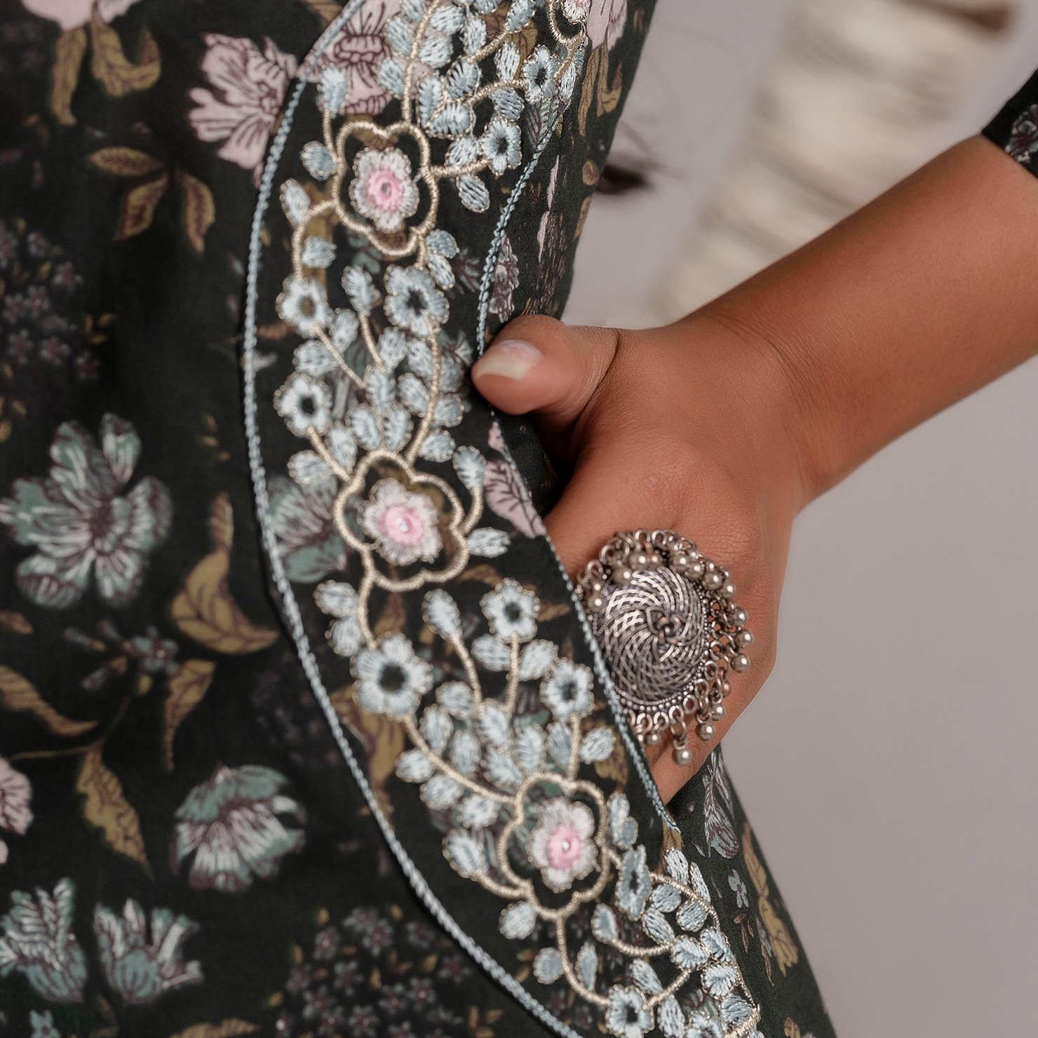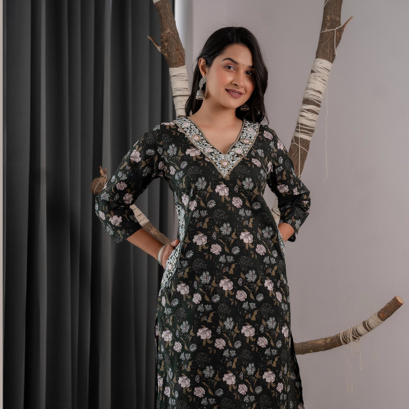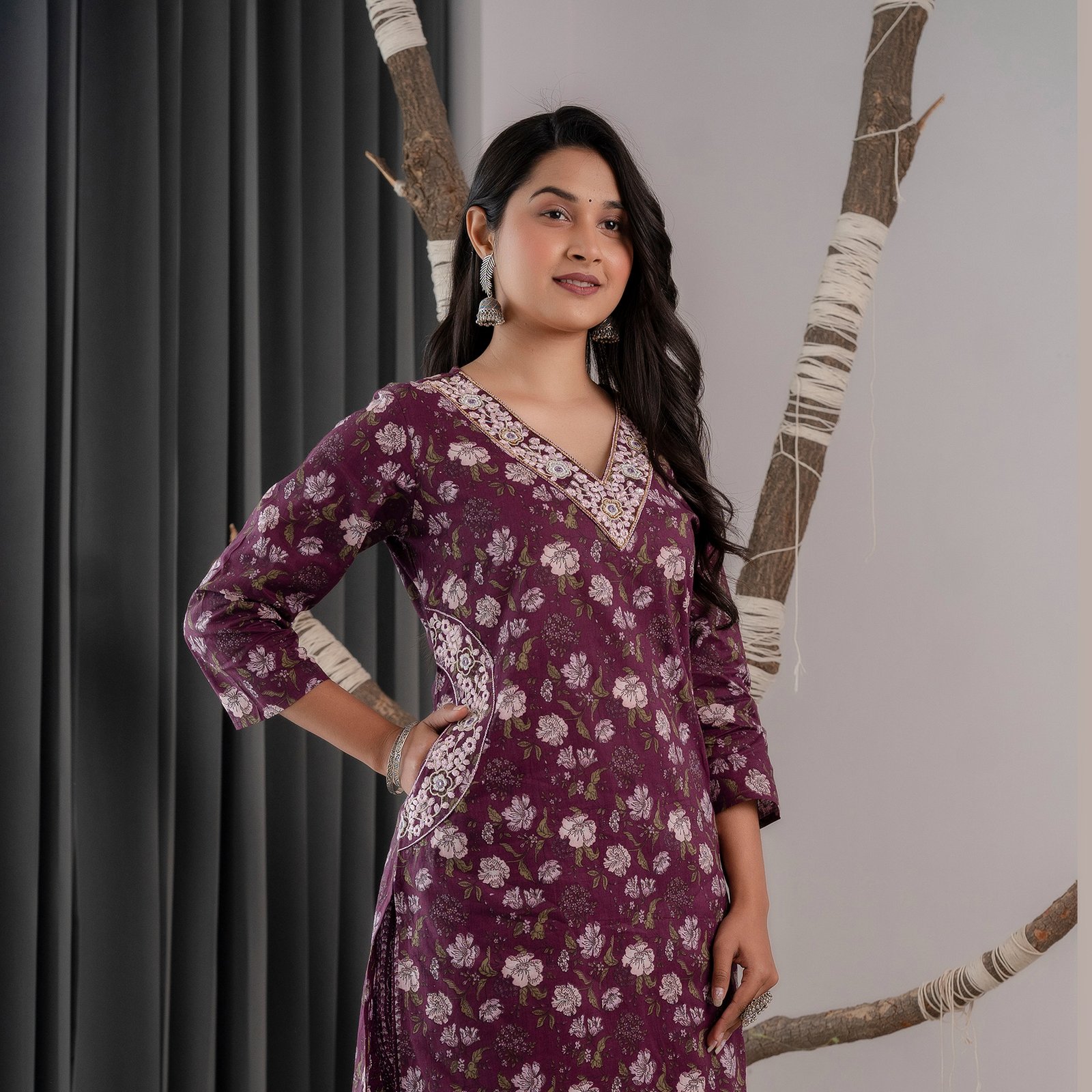 Experience a unique blend of traditional artistry and modern utility. This Kurti set isn’t just about looking good; it’s designed to make your day easier and more stylish with its thoughtful details.